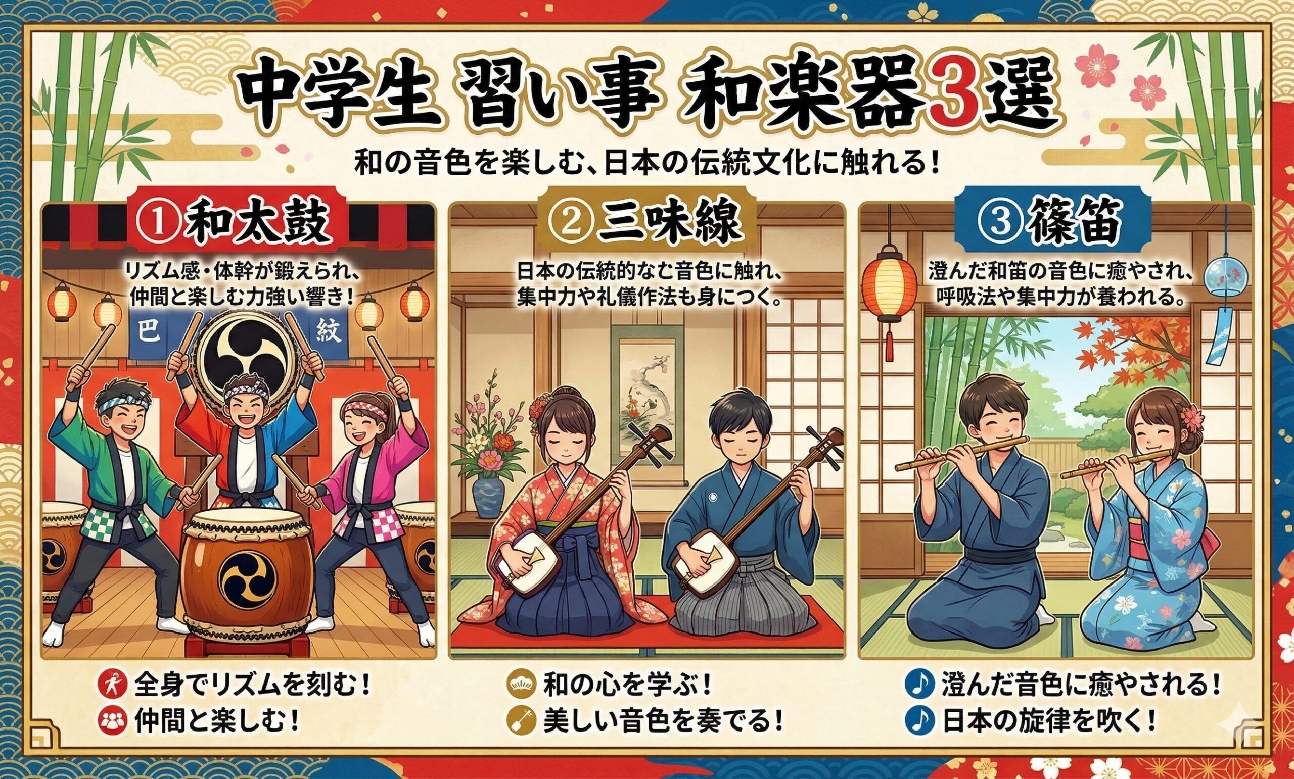 中学生でも始められる和楽器3つを紹介します。